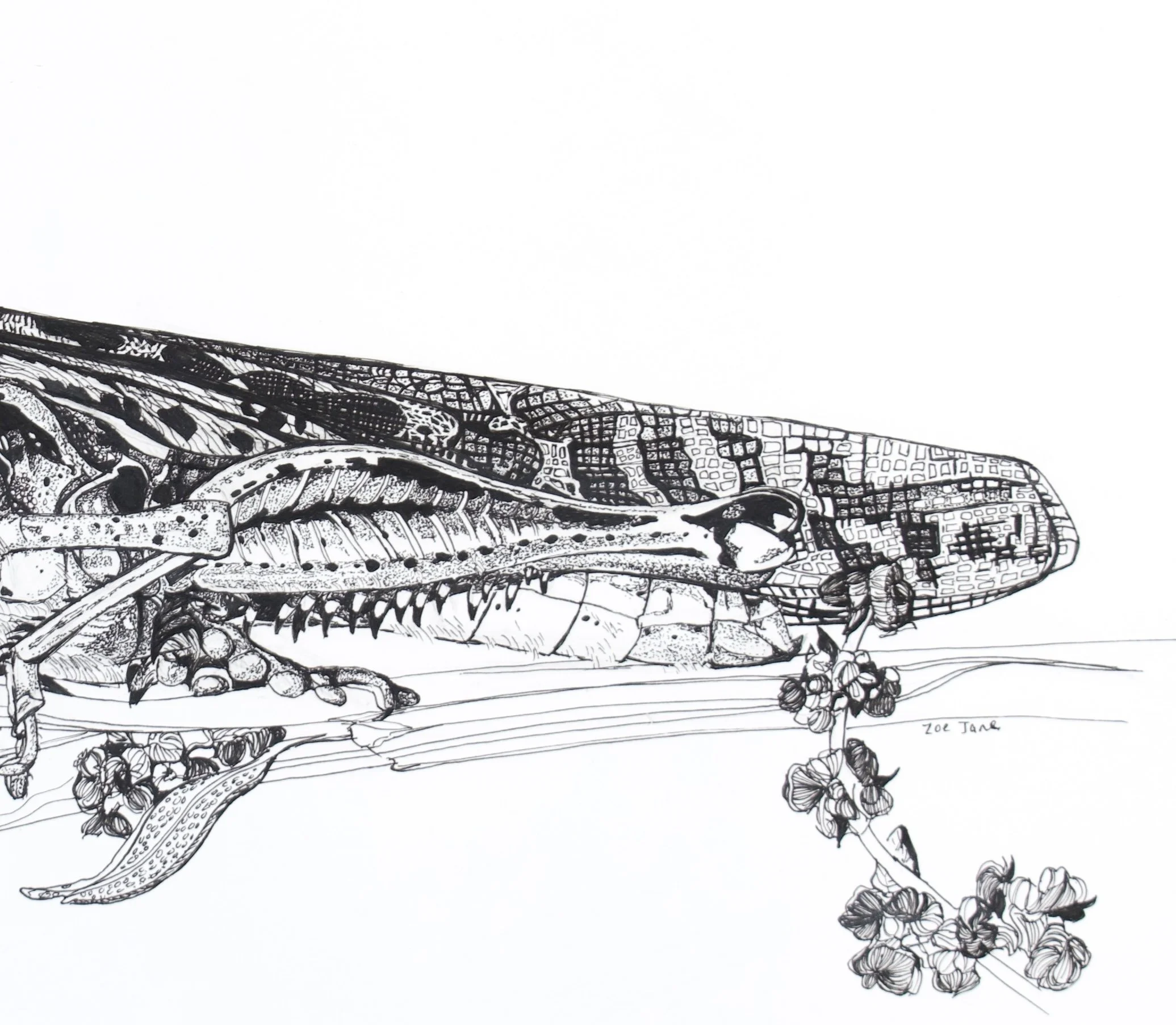 Incredibly detailed drawing of an American Bird Grasshopper using archival ink fine liners.
